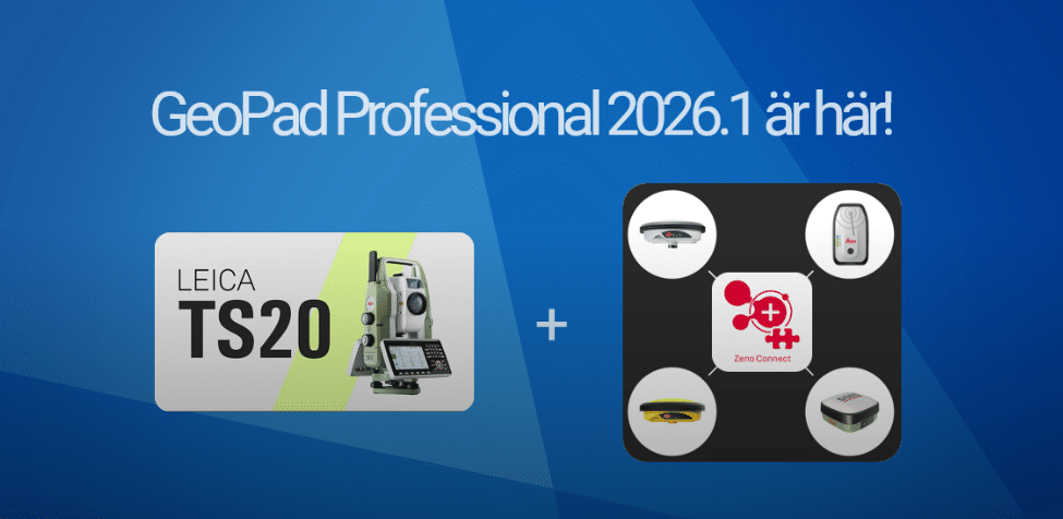 I GeoPad har stöd för Leica TS20 släppts samt en efterlängtad funktion där dropplistor för bl.a. punktkod filtreras om man börjar skriva, vilket gör det snabbt och enkelt att välja rätt kod om man använder en kodlista med många koder. Läs mer om nyheterna i